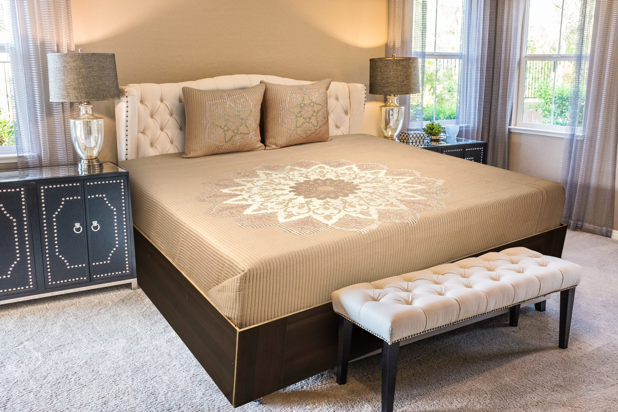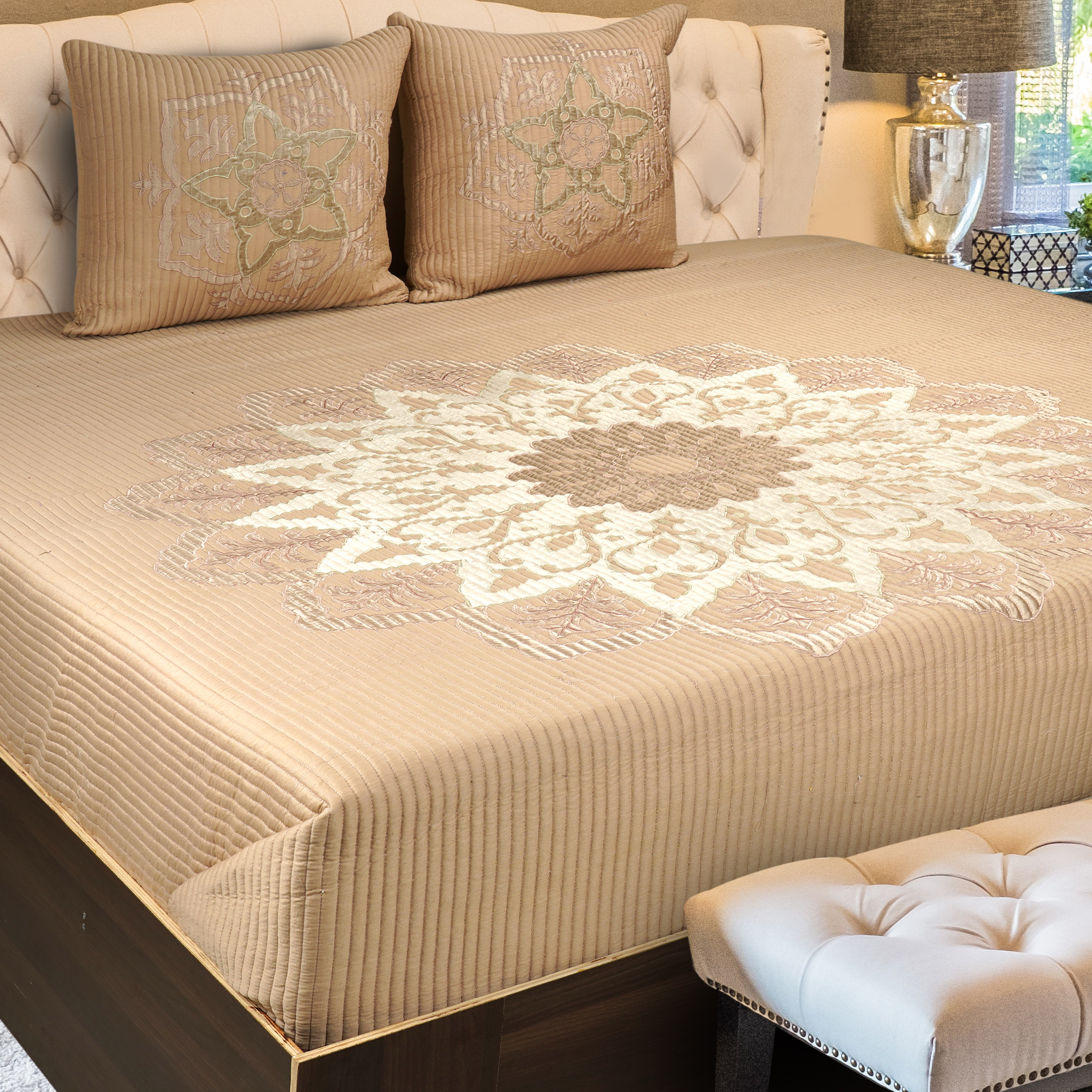 Alaqua Beige Emb. Faux Silk Bedspread