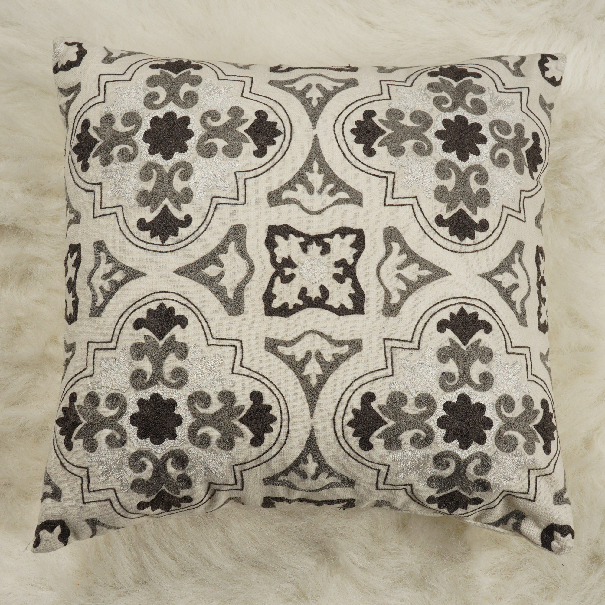 Ivory Cotton Embroidered Cushion Cover