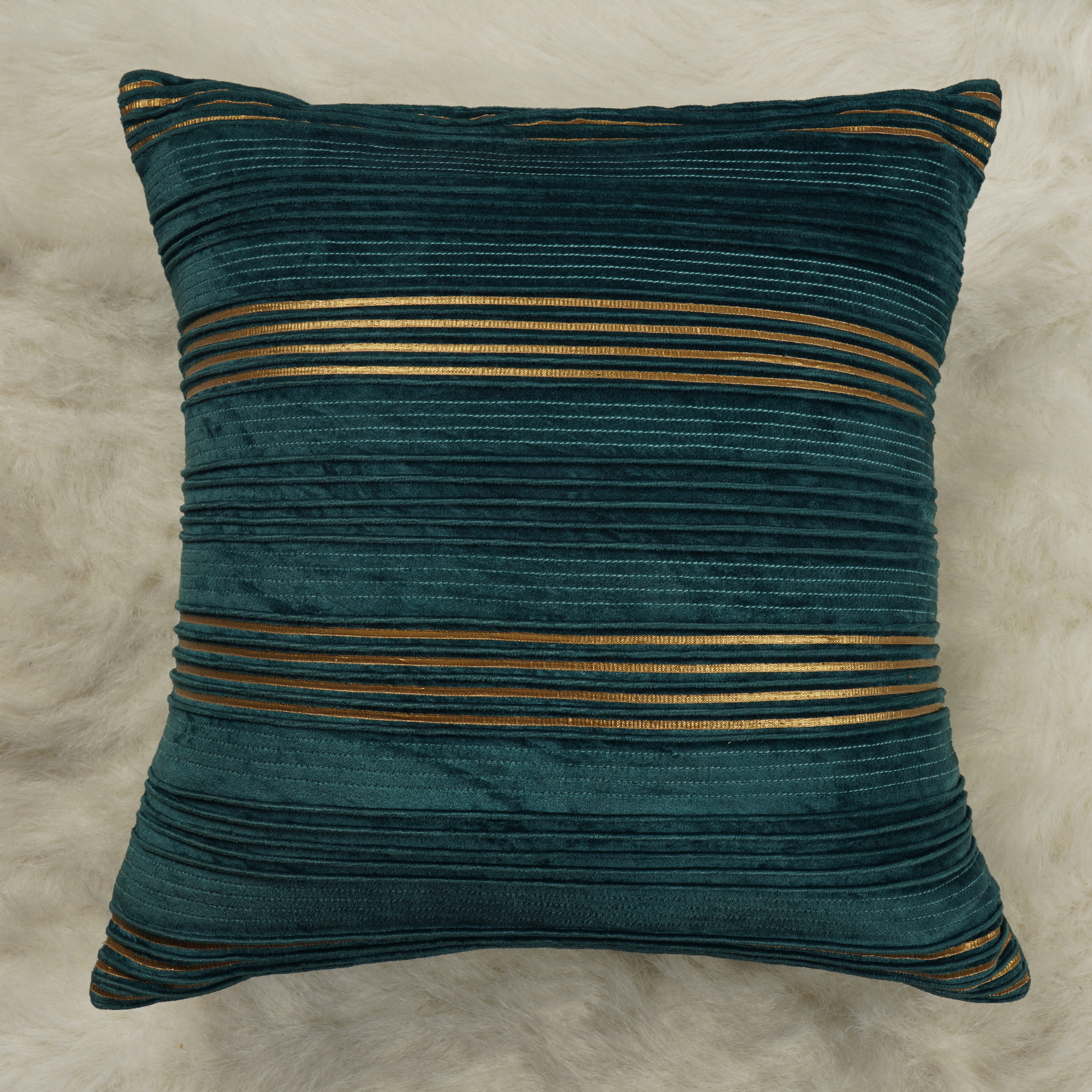 Teal Green Velvet Pintex Gota Work Cushion Cover